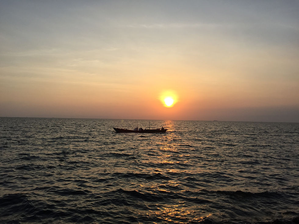 On a été un peu se baigner dans une eau à 30 degrés, au milieu des cambodgiens venus profiter du week end en famille, on a mangé du fameux crabe bleu pêché ici, on a regardé le soleil se coucher chaque soir sur le golfe de Thaïlande. Les enfants le savent bien maintenant ; peut importe ce qu'il se passe dans la vie, le soleil se couchera chaque soir et se lèvera chaque matin. La vie continue et on avance. Même si c'est dur, même si on a l'impression qu'on ne se relèvera jamais, en fait on y arrive toujours. Même si parfois notre démarche restera un peu bancale, même si parfois notre dos sera un peu courbé ou notre regard un peu fuyant.