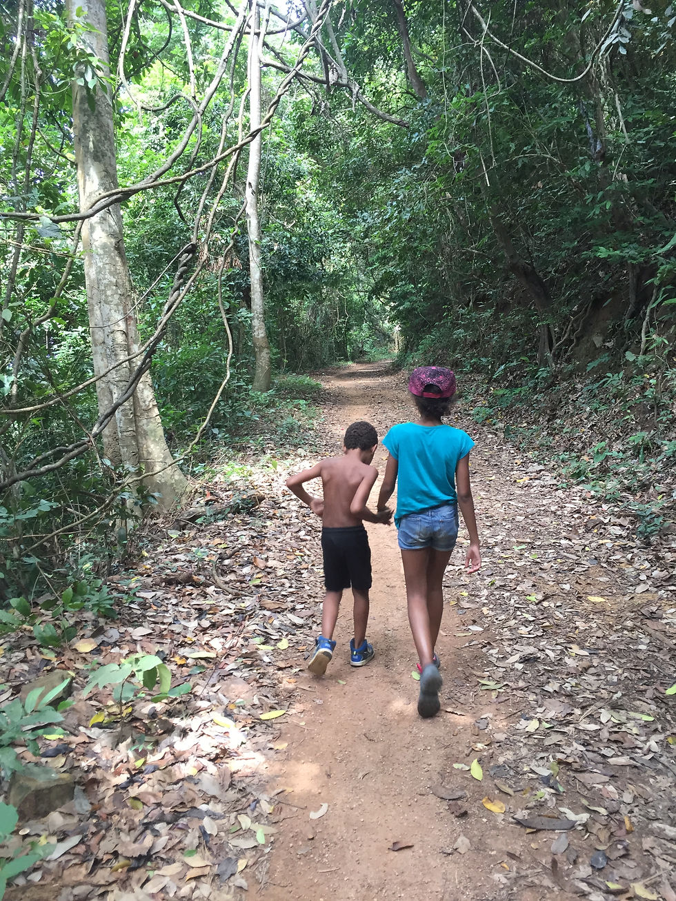 Nous avons donc fait un trail dans le parc national, entre les singes et les serpents (encore une première fois pour les enfants), sur un petit chemin ombragé, à se raconter des histoires, à faire des devinettes, à chanter des chansons, c'était vraiment un chouette moment, déconnectés de tout, dans un paysage somptueux !