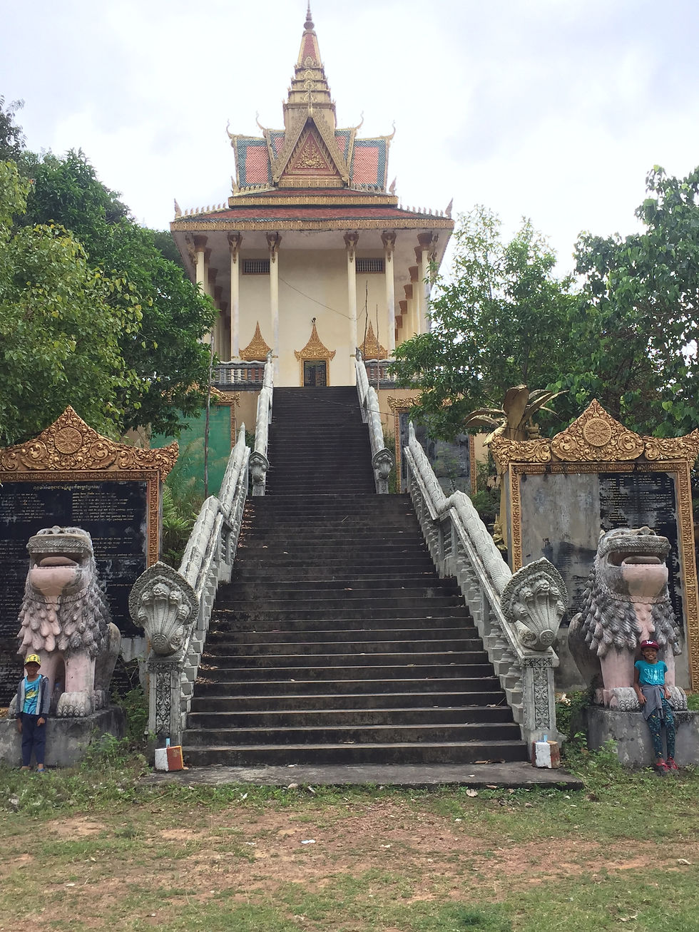 On m'a beaucoup dit que j'étais courageuse de partir seule avec eux, mais moi mon grand défi il était ailleurs...et j'ai repoussé un peu plus loin mes limites à Kep. Comme les enfants qui rentrent de l'école à 7 ans, les touristes en tongs ou les locaux sans casque, je rêvais de conduire un scooter. Après tout, je ne suis pas plus bête qu'une autre, pas de raison donc que je ne réussisse pas. Chose faite ; encouragée et motivée par les enfants on a loué un petit bolide et munis d'une carte on est partis visiter les environs pendant 2 jours. Je les entendais crier de joie dans mon dos, chanter très fort quand je m'accrochais aux poignées à m'en faire des ampoules pour éviter les trous dans les pistes, rire aux éclats quand je n'arrivais pas à éviter les fameux trous, et puis des fois je n'entendais plus rien, parce que le petit dormait affalé sur sa sœur et qu'elle profitait du paysage.
