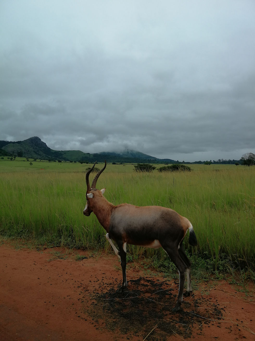 Nous faisons une dernière étape dans une réserve appelée Mlilwane Wildlife Sanctuary. La spécificité est qu'il n'y a pas d'animaux sauvages, il est donc tout à fait possible de s'y promener a pied, en vélo ou à cheval. C'est cette dernière étape que nous choisissons ! Baptême du feu pour mon petit cavalier en herbe de 6 ans qui se retrouve sur le dos du plus grand cheval (et du plus calme aussi). La balade à cheval donne une occasion fantastique d'observer la vie sauvage dans des zones autrement inaccessibles et d'approcher de très près des animaux généralement farouches. Le temps est toujours très chargé ; nous sommes en plein été et les températures peuvent atteindre facilement les 40 degrés. Ce temps brumeux qui nous poursuit depuis le début de notre voyage au Swaziland donne une ambiance magique et mystique. C'est vraiment magnifique.